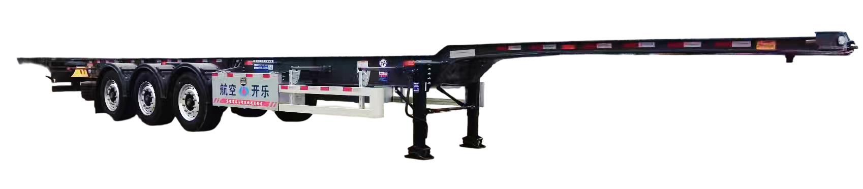 采用1300mm超宽中心距欧款车架结构,天生适配跨境复杂路况,防侧倾能力大幅提升,跑山区弯道、崎岖路段也不易晃,有效降低货物侧翻风险。大梁变中心距设计与集装箱鹅颈槽完美配合。